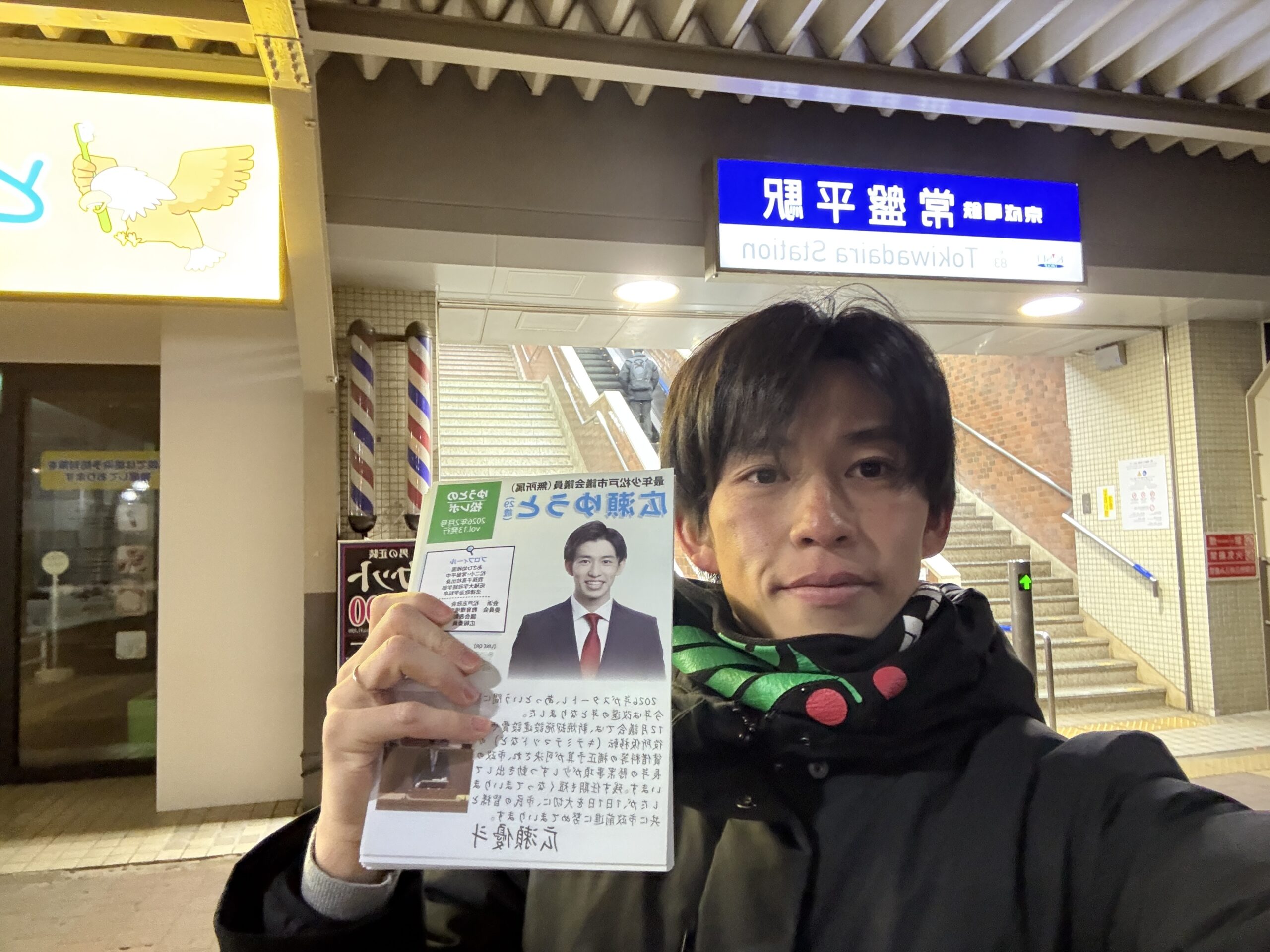 さて、今日は開票立会から帰って、寝ずに常盤平駅での御礼を含めた活動のスタートです!